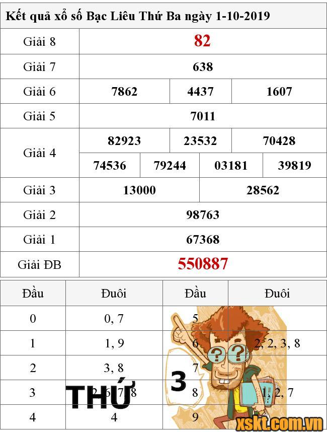 - Xổ số Bạc Liêu ngày 1/10/2019 chưa có kết quả