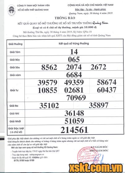 - Xổ số Quảng Nam ngày 30/4/2019 chưa có kết quả